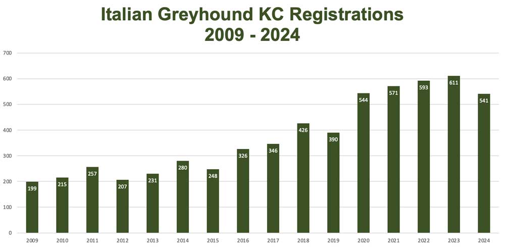 Italian Greyhounds have grown in popularity over the last 15 years, showing a particularly large spike in numbers in the 2020 national lockdown, with bloodlines coming into the breed from across the globe. Therefore, it is more important than ever to keep the breeds genetic health at the forefront of breeders’ minds to ensure the Italian Greyhounds future is bright.
